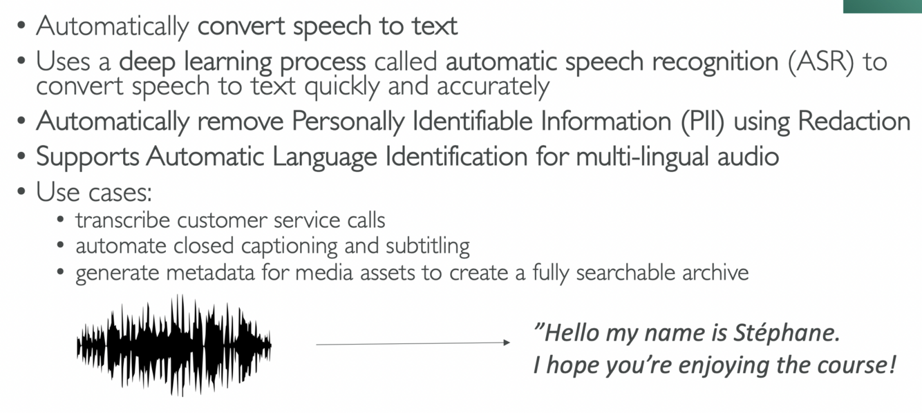 What is Amazon Transcribe? What is the tool within to remove PII data?