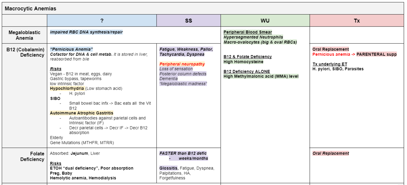 Megaloblastic Anemia labs