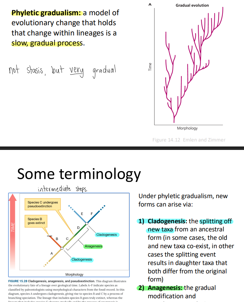 What are the two different ways new forms of morphologies can arise under phyletic gradualism?