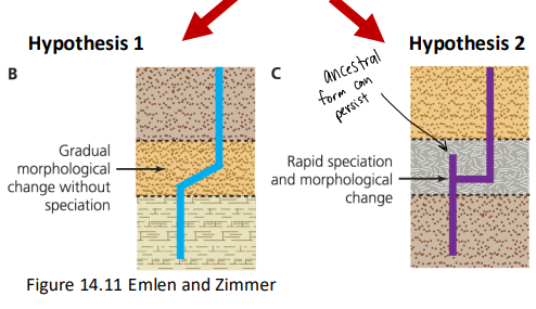 Punctuated equilibria - short periods of stasis with some intervals of rapid morphological change