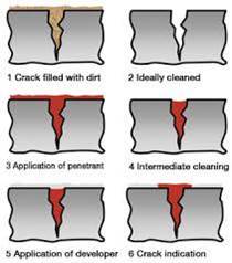 Dye Penetrants are the most common form of non-destructive weld test. This is because they are cheap and portable. X-rays and Ultrasounds are more expensive and not as versitile, however they are more accurate.