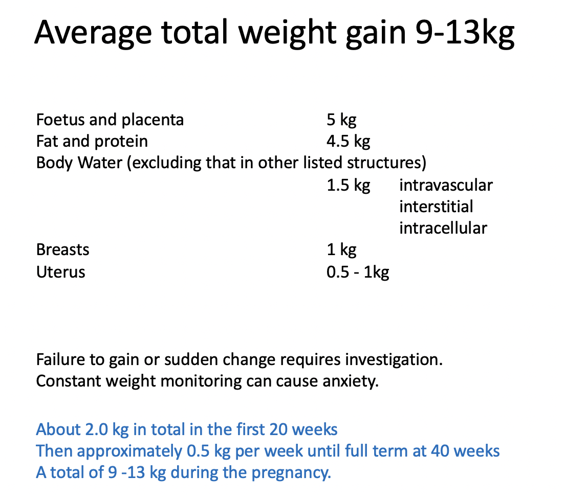 how much weight gain in first 20 weeks - then how much kg per week until full term