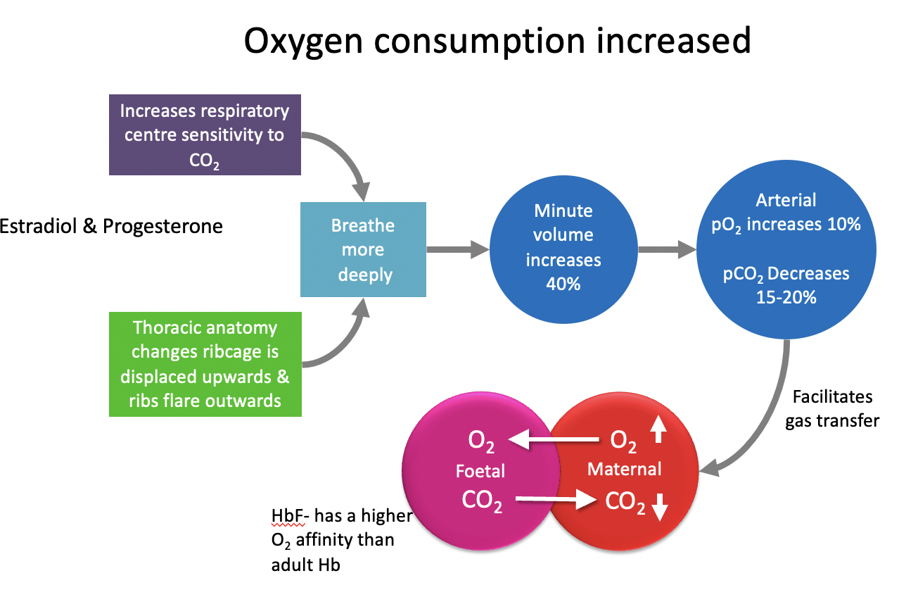 What happens to oxygen consumption during pregnancy?