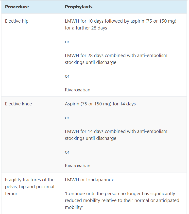 For certain surgical procedures (hip and knee replacements) pharmacological VTE prophylaxis is recommended for all patients to reduce the risk of a VTE developing post-surgery