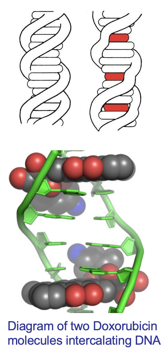 How does Doxorubicin (an anthroycycline) intercalate DNA?