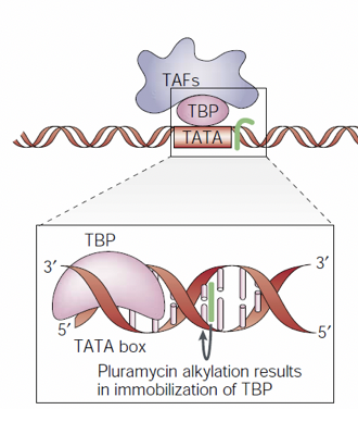 Alkylation is enhanced by this, meaning that TBP becomes immobilised in the DNA