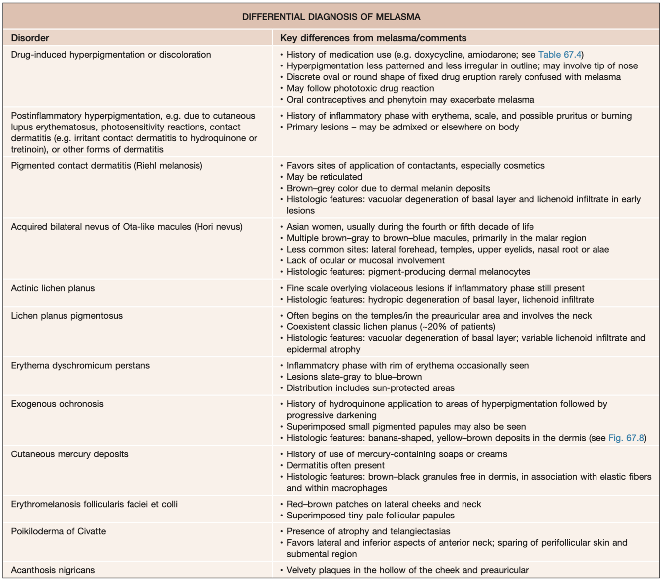 mélanocytes normaux ou légèrement plus nombreux, plus grande taille (dendrites proéminents)
