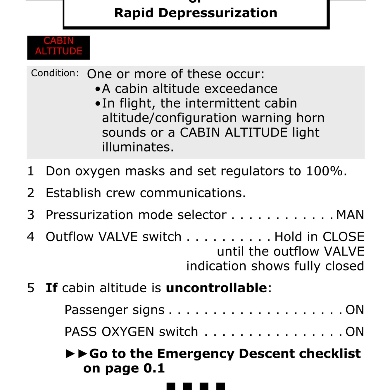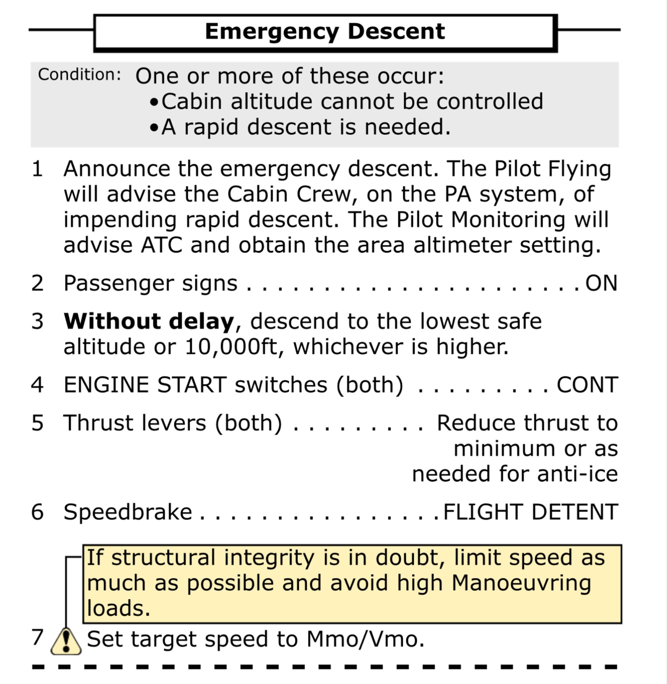 “Memory items Emergency Descent”