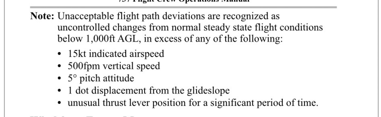 Wind shear unacceptable deviations