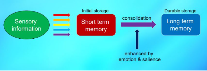 It is hypothesized that facts and events are stored in short-term memories and only a subset are converted to long-term memories through a process called memory consolidation