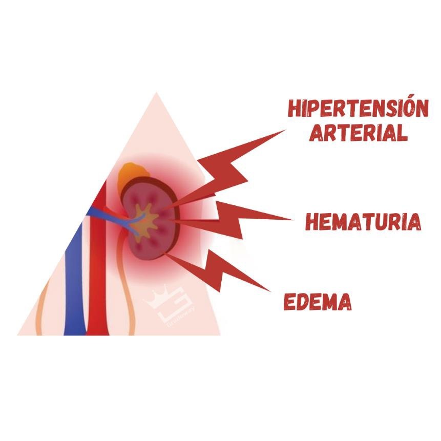 La respuesta inflamatoria glomerular induce a la retención de NA y H20 que lleva a EDEMA e HIPERTENSIÓN. La respuesta inflamatoria también produce lesión que desencadena HEMATURIA