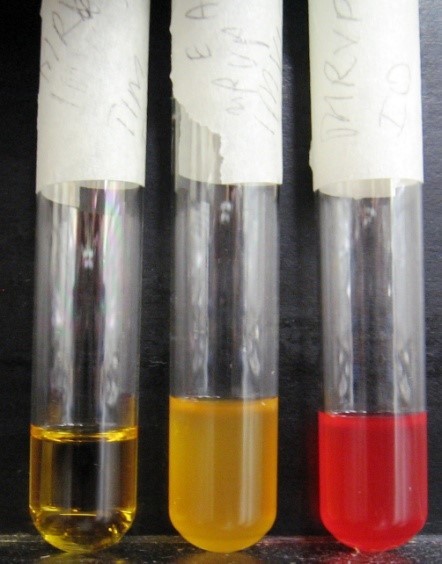 positive methyl red test = red negative methyl red test = yellow