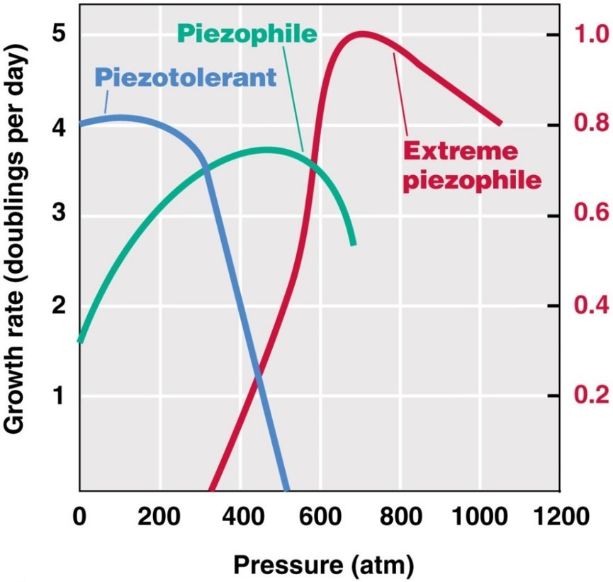 Piezophiles (barophiles) are organisms whose survival and reproduction is optimized to high pressures, such as those in deep sea environments.