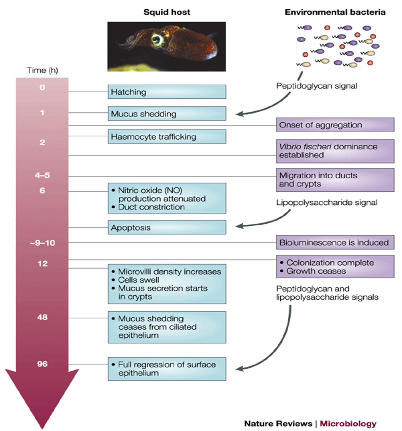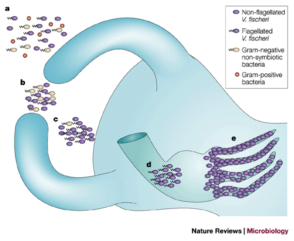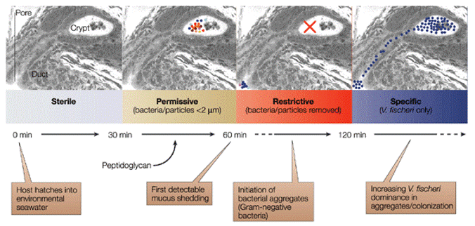 Diagram detailing squid and A. fischeri stages of colonisation