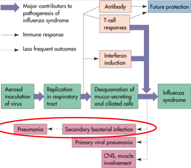 Why are people with the flu more susceptible to secondary bacterial infection?
