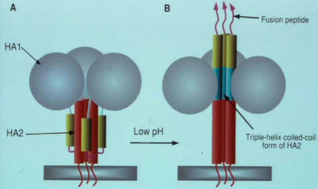 Haemagglutinin (HA) binds to sialic acid on the membrane of the host cell and fuses to it when it is in the low pH lysosome. The more basic residues there are in the peptide, the more easily the virus can dissociate from the cell once infection has taken place.