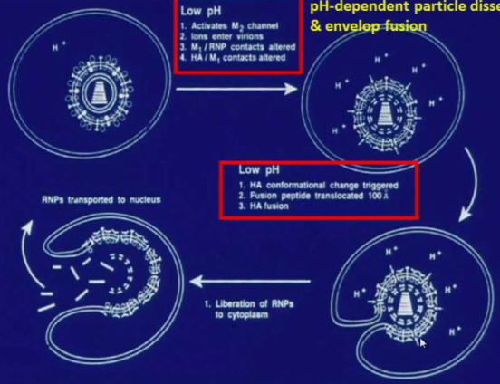 M2. If H+ cannot enter through this channel the virus cannot disassemble and infect the cell.
