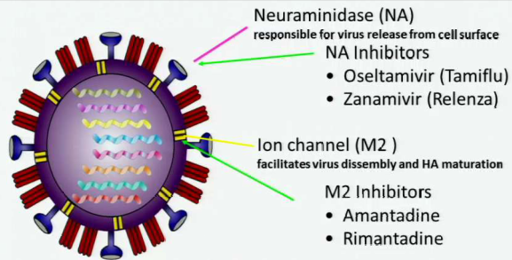 Neuraminidase inhibitors (oseltamivir & zanamivir) and M2 channel blockers (amantadine & rimantadine)