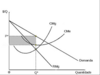 Um subsídio efetivamente desloca a curva de oferta para a direita, o que significa que uma maior quantidade é fornecida a cada preço. O novo equilíbrio resultante será a quantidade onde o custo marginal é maior do que o benefício marginal, de modo que há uma perda econômica de produção de mais do que a quantidade ideal do bem subsidiado.