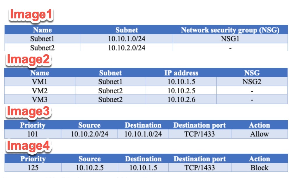 For NSG1, you create the inbound security rule shown in the following table: (see image3)