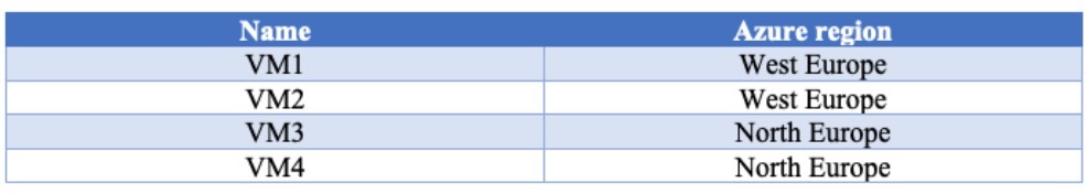 You have an Azure subscription that contains the virtual machines shown in the following table: (see image)