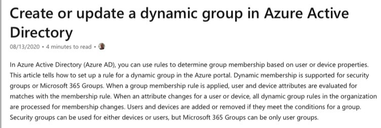 Reference: https://docs.microsoft.com/en-us/azure/active-directory/enterprise-users/groups-create-rule Quick Preview: