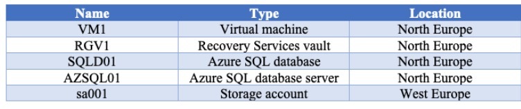 You have an Azure subscription that contains a resource group named RG26. RG26 is set to the West Europe location and is used to create temporary resources for a project. RG26 contains the resources shown in the following table: (see image)