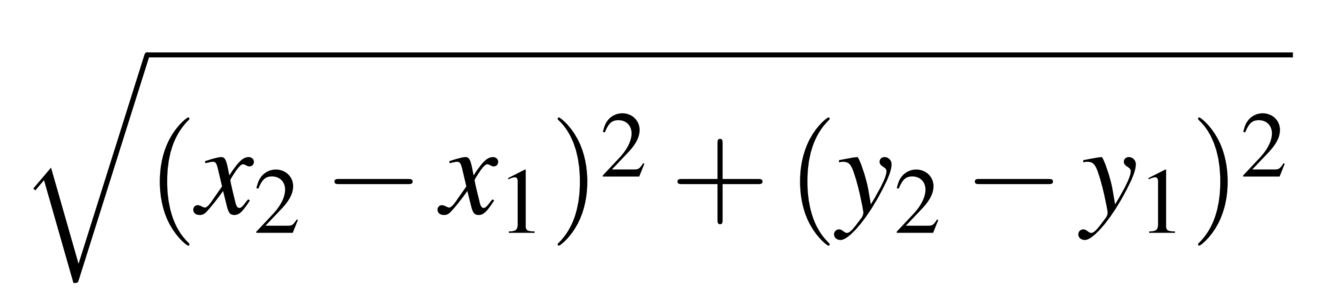 d = sqrt(y2-y1)2 + (x2-x1)2)
