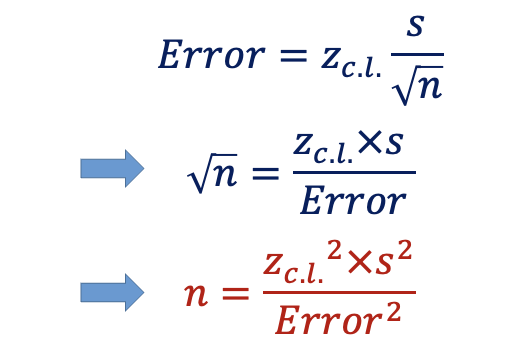 Example formula: For 90% confidence level with known standard deviation, .