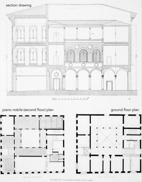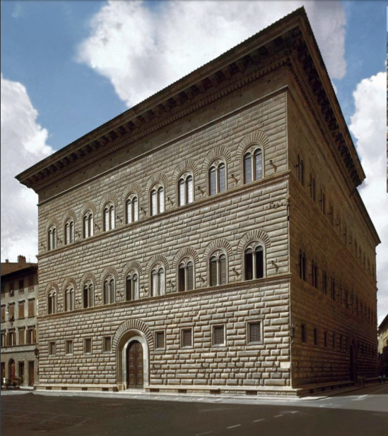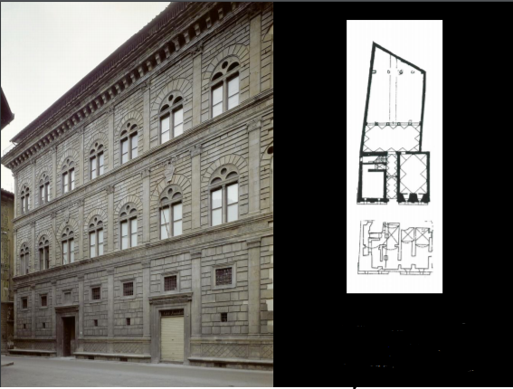 [Facade] pilasters as ordering device and ornamental motif articulate window bays / more delicate than Medici