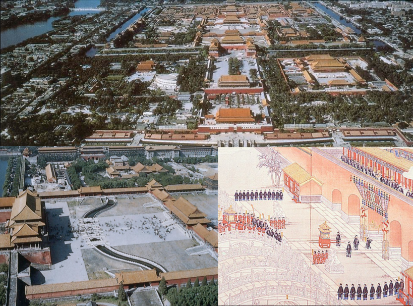 [GATE OF SALUTATION] stout flanking towers and oldest part of complex and led to second courtyard where imperial ceremonies were staged in front of courtiers and ambassadors
