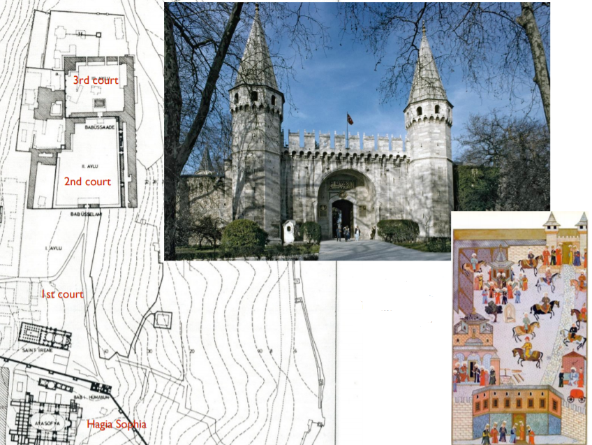 [GATE OF FELICITY] leads to 3rd courtyard / emperor held public audience here / characteristic Ottoman form: domed pavilion whose columned porch projects far forward at low angle