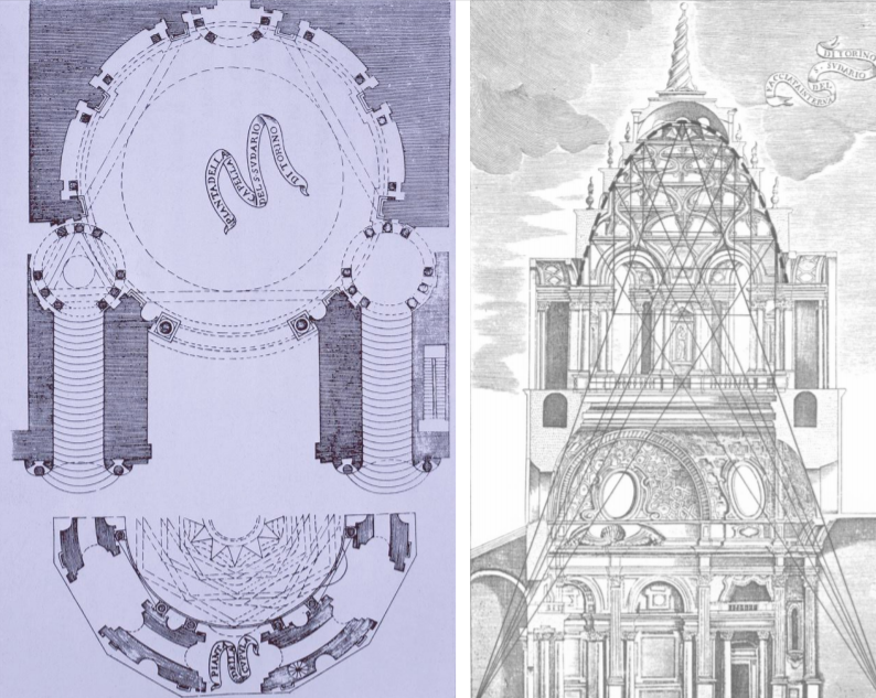 [Double Skin Dome] octagonal of brick / spreading force solved by set of four internal horizontal stone and iron chains, embedded within inner dome / vertical “ribs” set on corners / herringbone brick pattern transferred loads to ribs