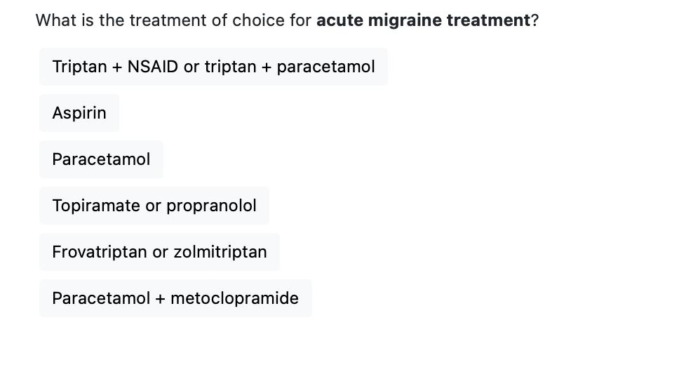 Describe the acute treatment for migraine [+]