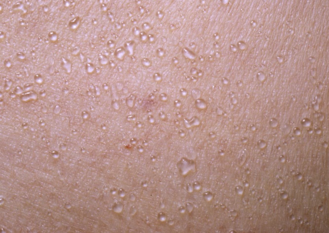 Miliaria cyrstallina presents as: