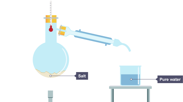 Give the three steps to simple distillation of salty water.