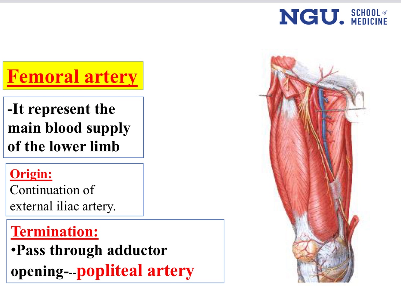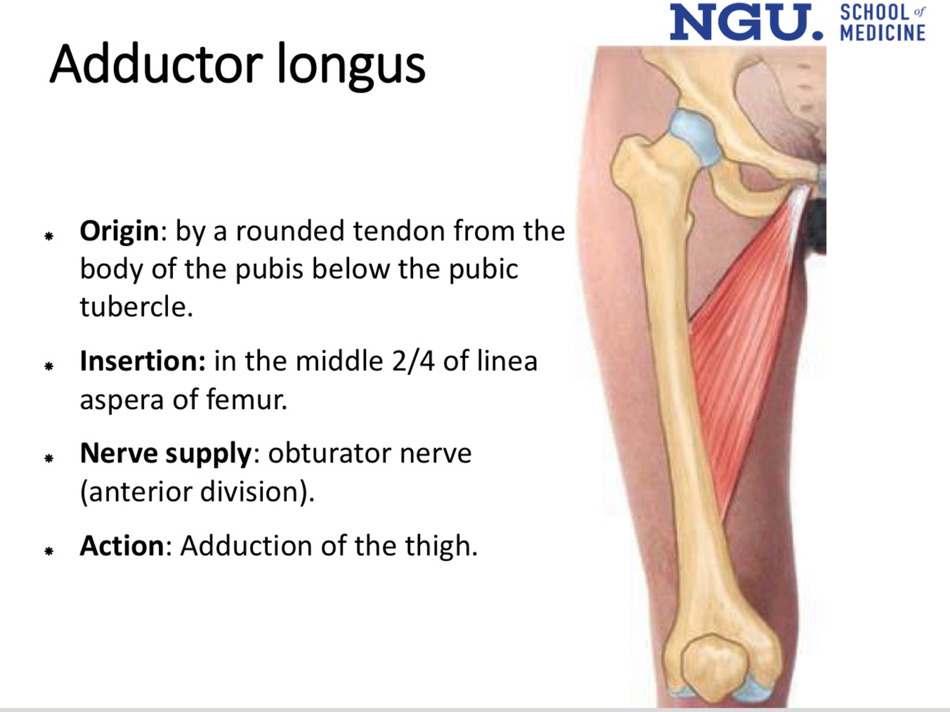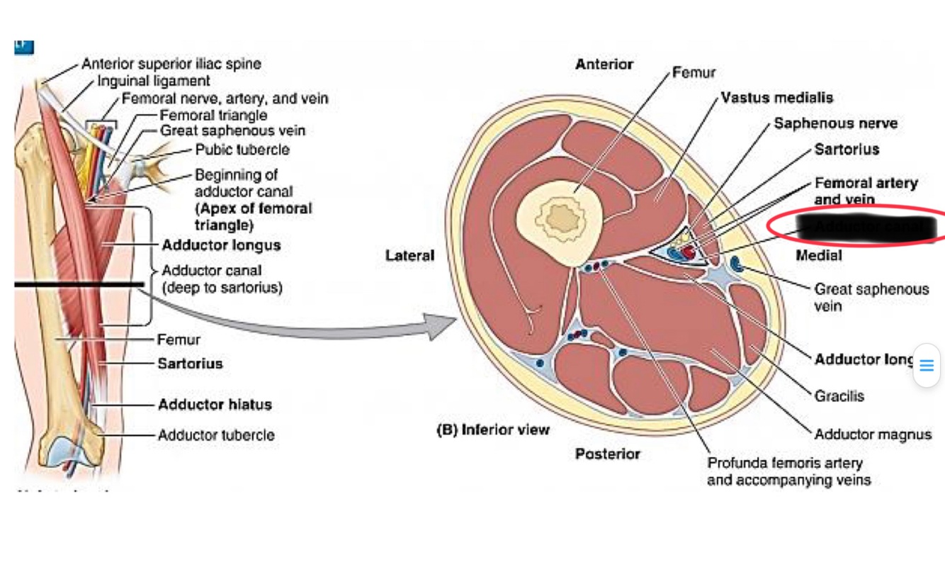 It begins at the apex of the femoral triangle and ends at the opening in the adductor magnus (adductor hiatus).