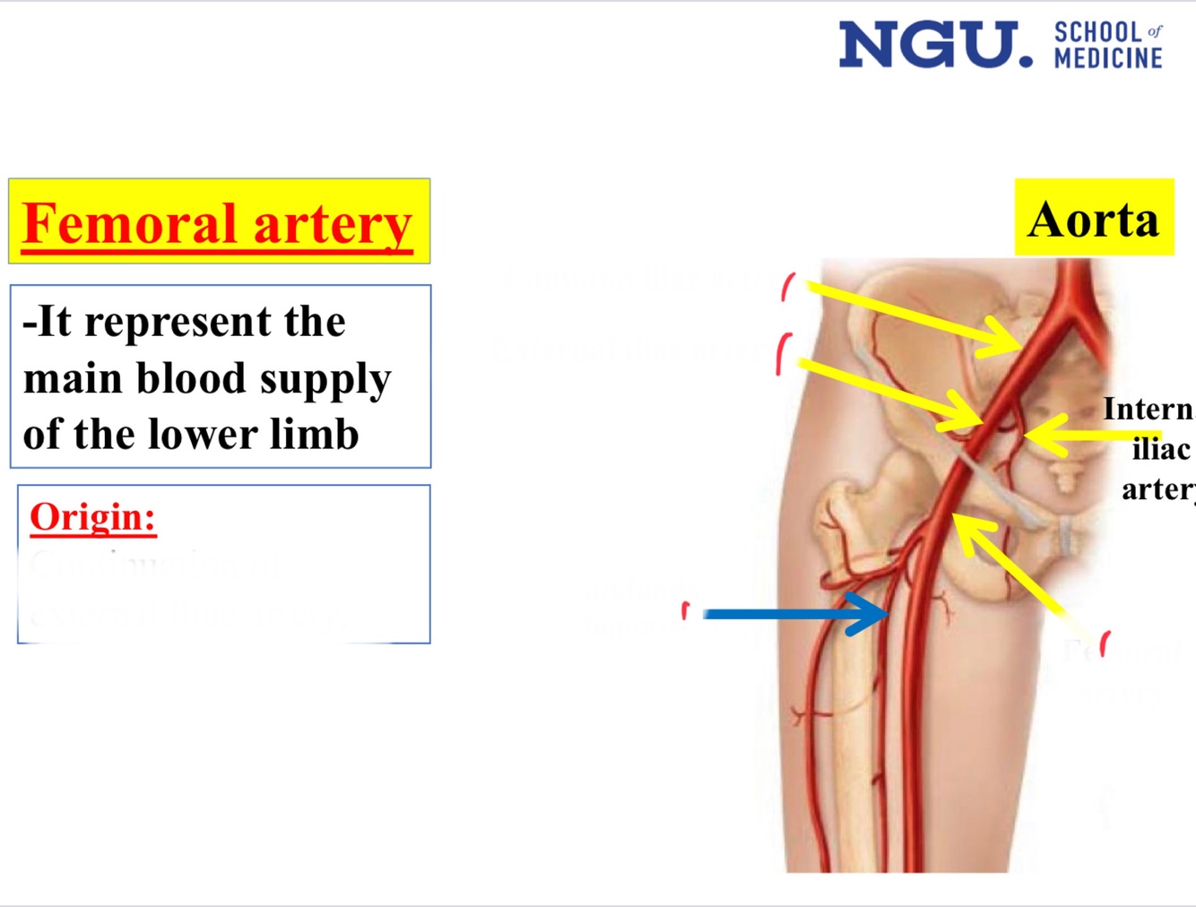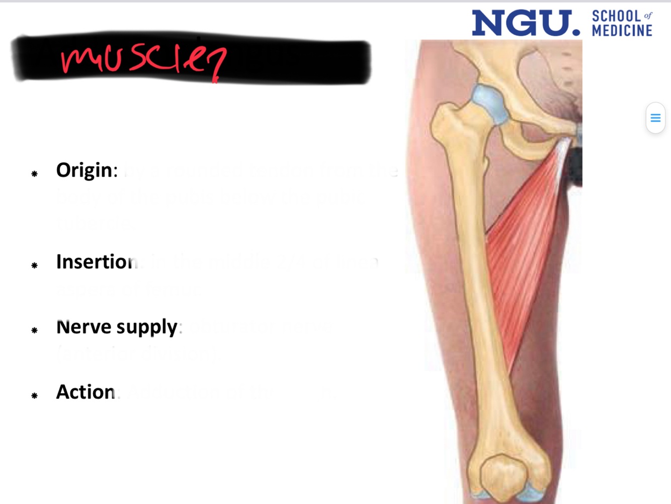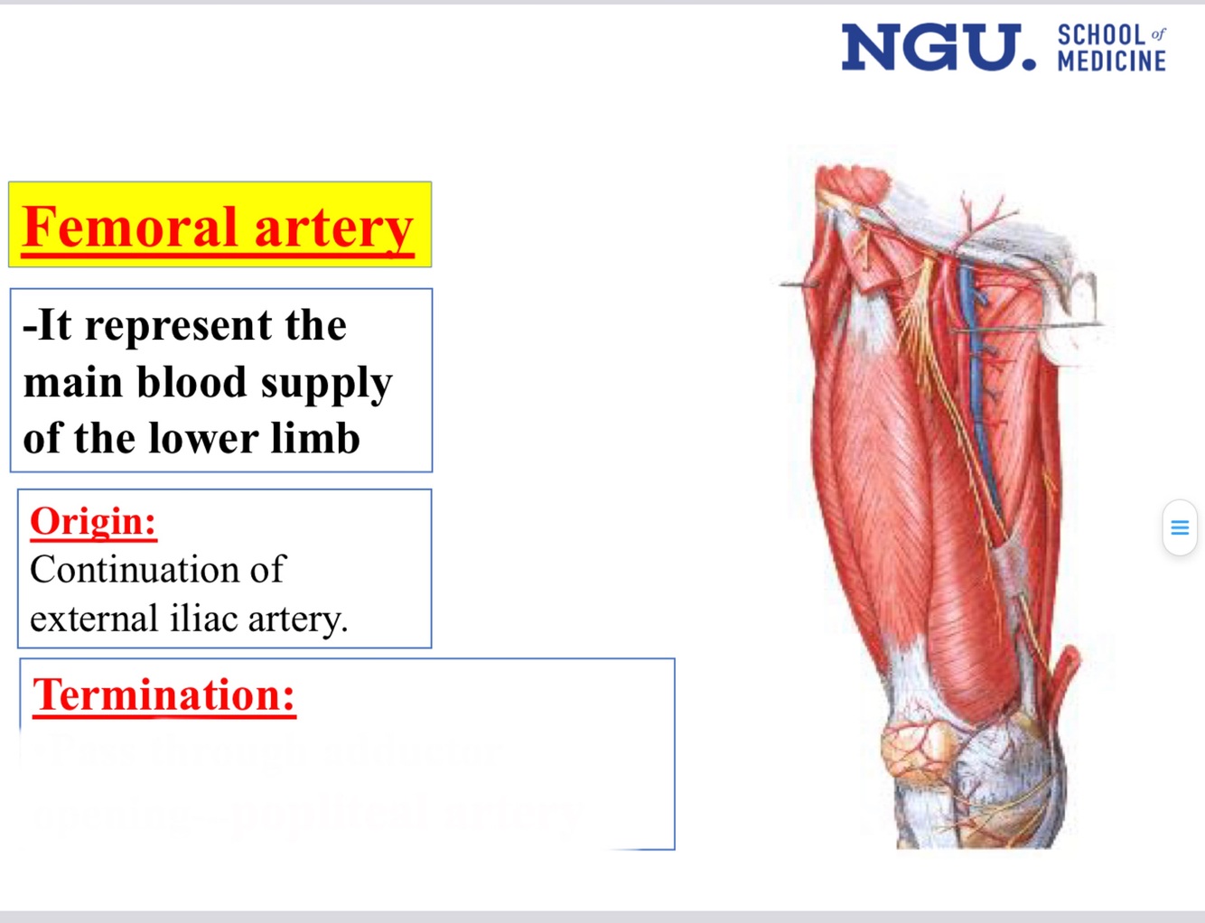 It begins at the apex of the femoral triangle and ends at the opening in the adductor magnus (adductor hiatus).