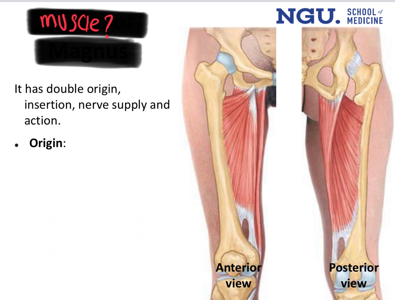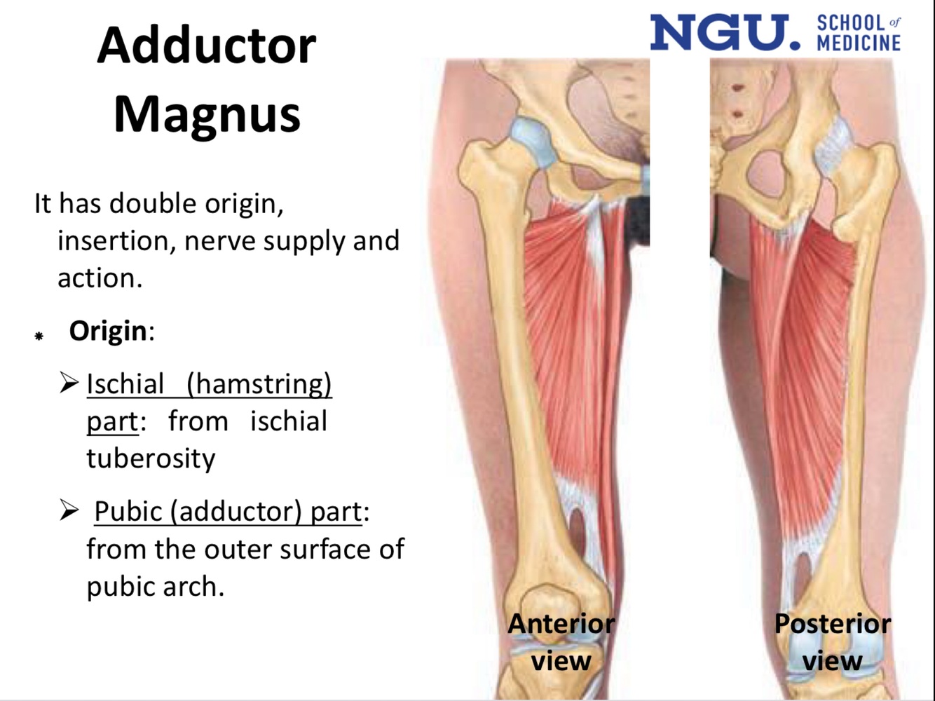 Ischial part: extension of the hip joint (like hamstring muscles).