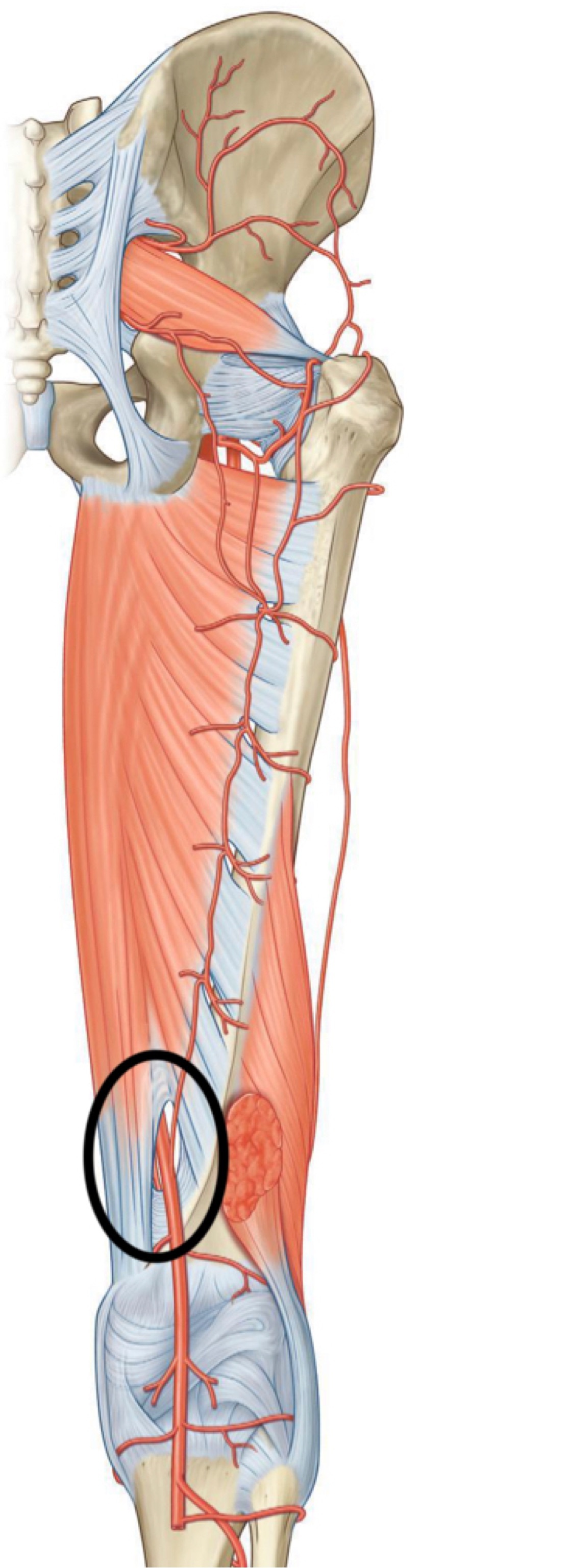 allows the femoral vessels to pass from the adductor canal downwards into the popliteal fossa.