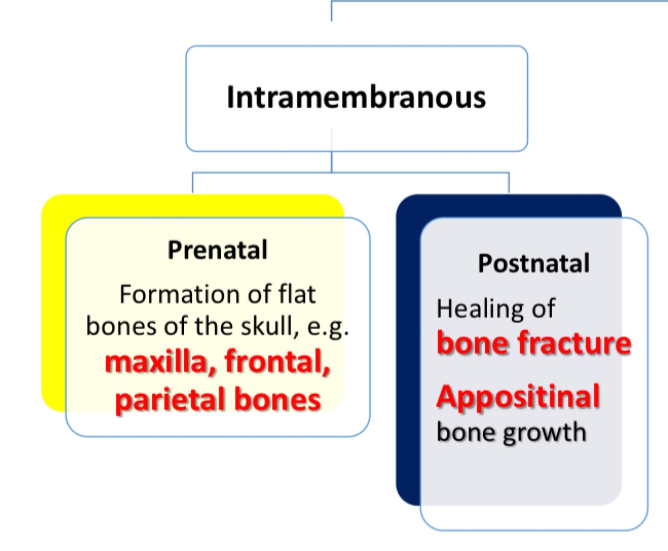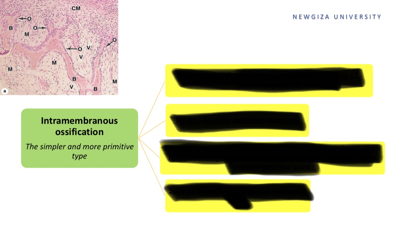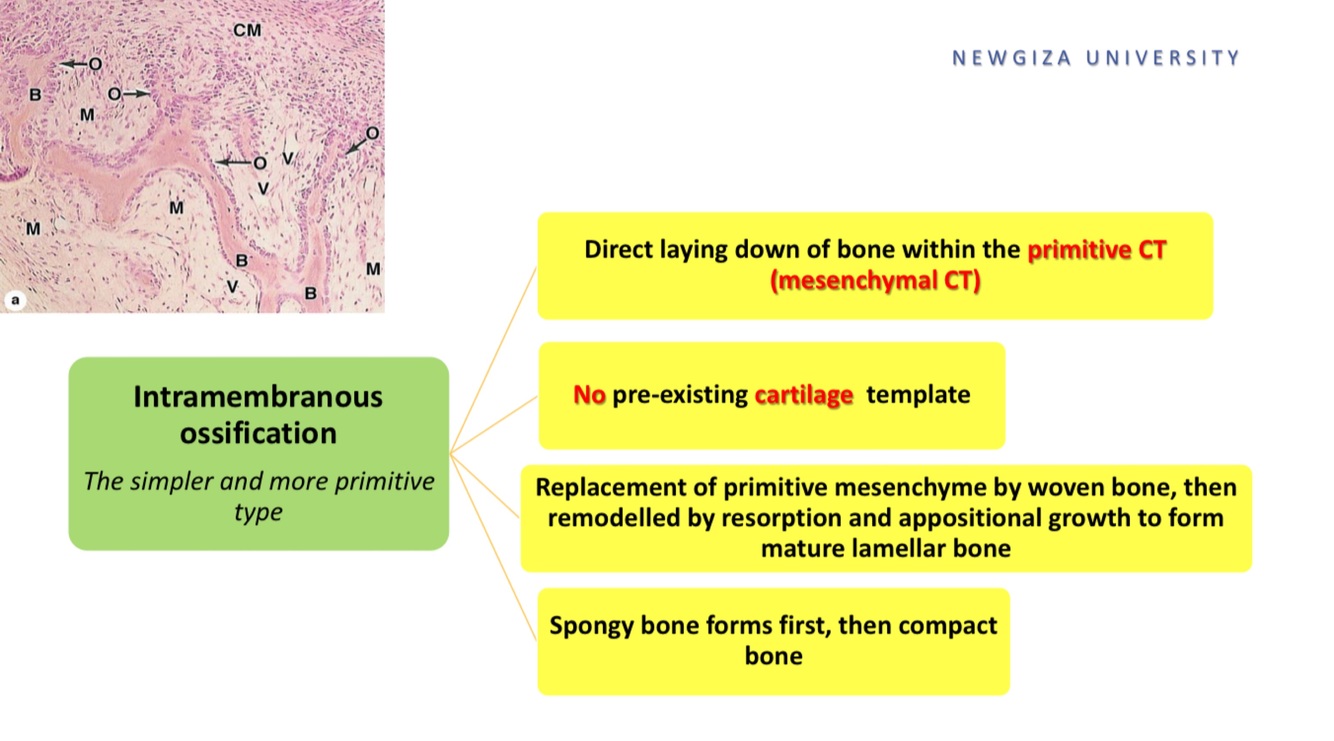 explain Intramembranous ossification in 4 points