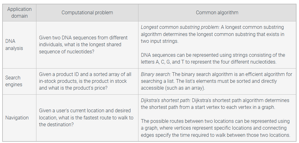 VIEW: Example computational problems and common algorithms