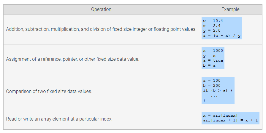 A constant time operation is an operation that, for a given processor, always operates in the same amount of time, regardless of input values.