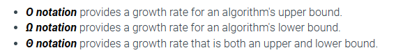 What 3 asymptotic notations are commonly used in complexity analysis?