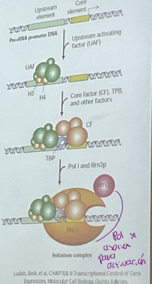 regiones para que se una la pol 1 para la transcripción del ARNr?
