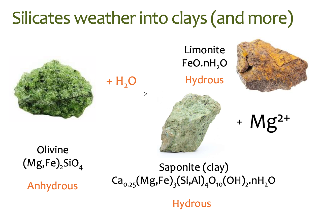 Når magmatiske mineraler forvitrer, oppløses de og danner nye mineraler med forskjellig kjemi, som for eksempel leirmineraler
