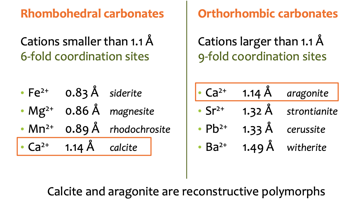 Hvilke karbonatstrukturer passer for større ioner? / Which carbonate structures fit larger ions?