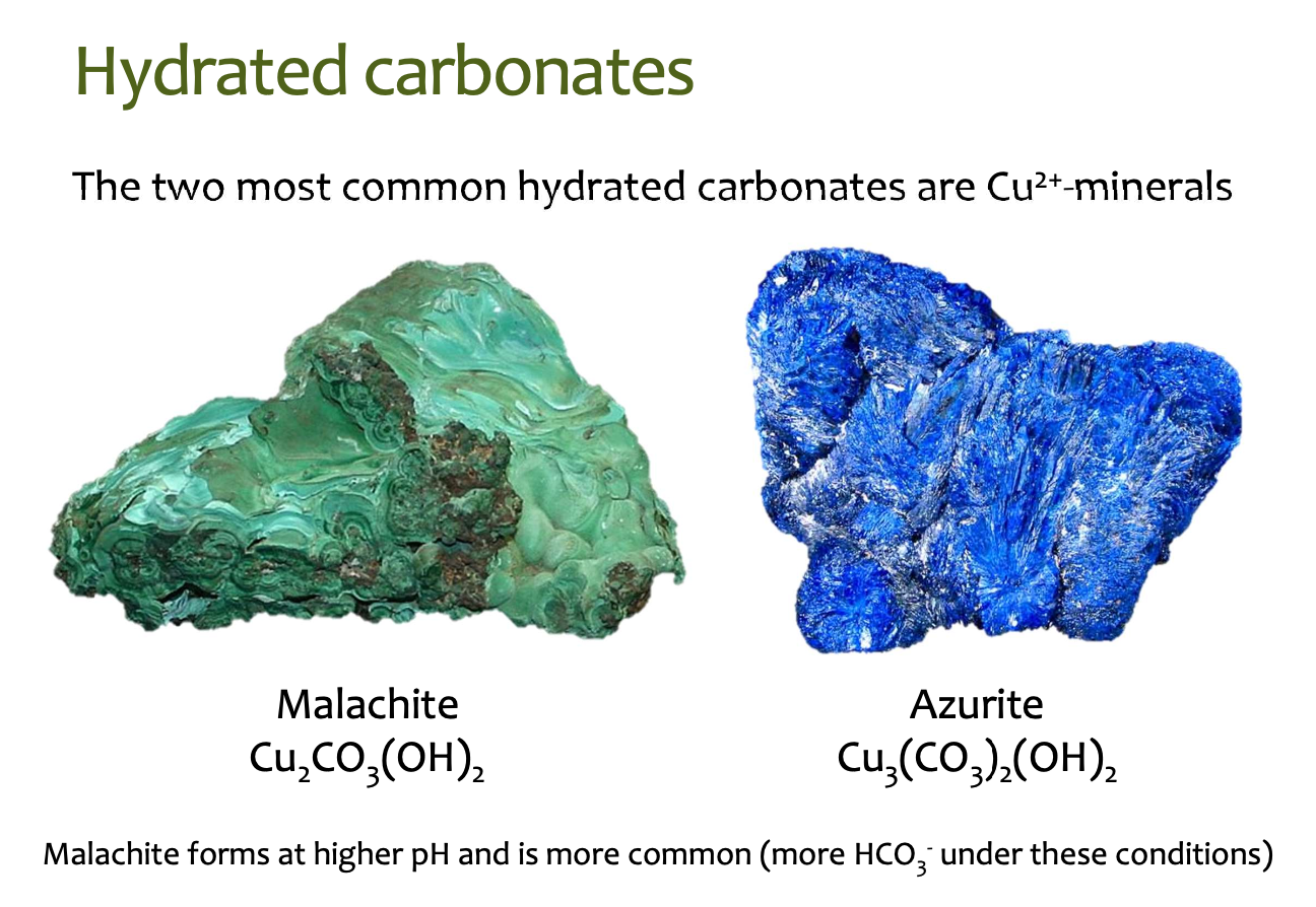 Dei to mest vanlige hydrerte karbonadene er Cu2+-minerals