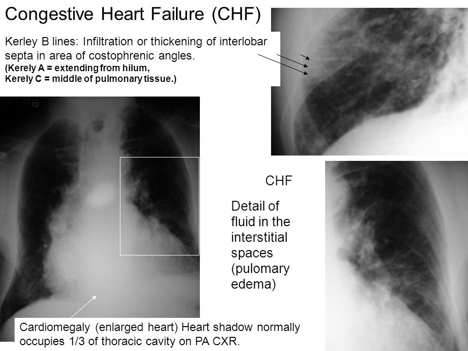 How does CHF manifest on a chest x-ray?