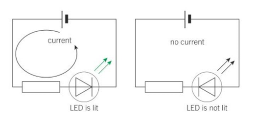 What are the two experimental ways which can be used to determine the point where a current is conducted through an LED?